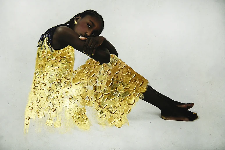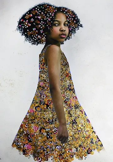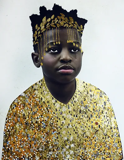 If Tawny Chatmon’s embellished photograph masterpieces remind you of Gustav Klimt, you’re spot on. In an interview for Saatchi Art’s YouTube channel, photography artist Tawny Chatmon said she is “extremely inspired by the Austrian Secession” artists which include Klimt. Chatmon’s work is focused on celebrating black childhood. Like many people, growing up, she walked through room after room of museum exhibits barely (if at all) finding people who looked like her. As a mom of three, her work seeks to show children of color how gorgeous they are. She adorns the children in her photographs with regal gold and gem drapery and headpieces inspired by Gustav Klimt’s Golden Era.